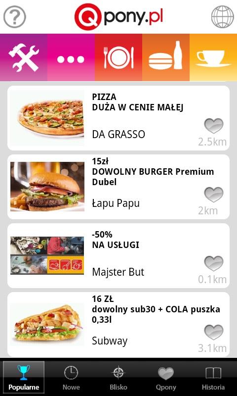 Qpony.pl to kupony rabatowe i zniżki do najlepszych miejsc w Twojej okolicy. Jeżeli jesteś promohunter, często korzystasz z kuponów (np McDonald ) to ta aplikacja jest dla Ciebie.